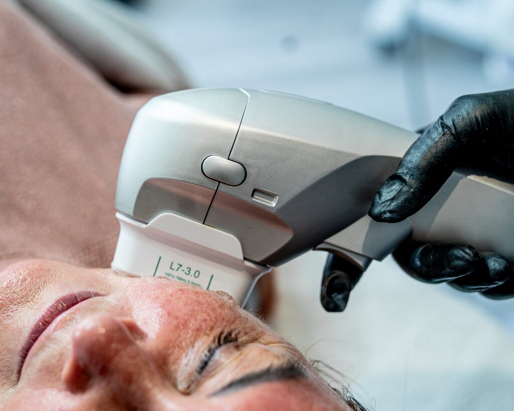 HIFU is a non-invasive treatment that uses ultrasound energy to lift and tighten the skin. It is particularly effective for targeting sagging skin on the face, neck, arms and décolletage. For best results, 3 treatments spaced 4 weeks apart are recommended, followed by maintenance every 6 months.